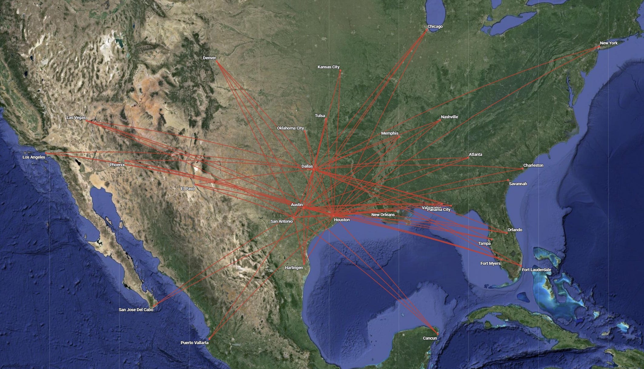 In 2017 the airline also started leasing more 737s from JetStream Aerospace, adding new air service from Houston-HOU, Austin-AUS and Dallas-DAL to Los Angeles-LAX and New York-LGA, as well as to Houston-HOU «» Los Cabos-SJD and Austin-AUS «» Los Cabos-SJD.